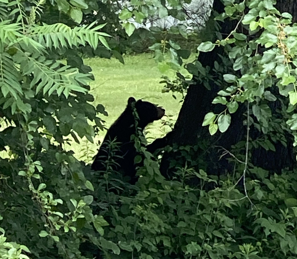 I have seen bears—black bears—on two other occasions during the decade-and-change I’ve lived here in western Massachusetts. The first instance was similar—I was out for a run and saw a bear shoot across the street far ahead of me (“Is that a cat?? That’s a big cat… Wait, that is NOT a cat!”).